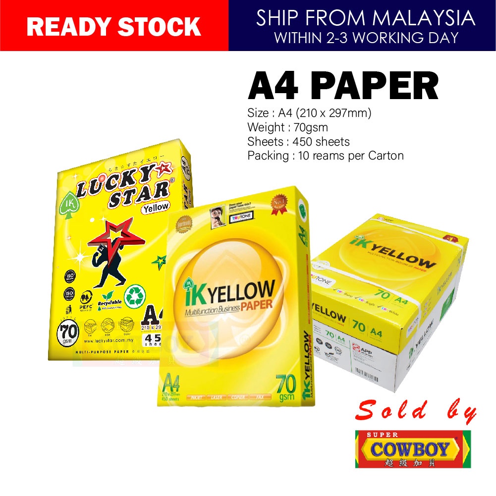 A4 White Paper Multifunction Business 70gsm 450 Sheets 210 X 297mm Ik Lucky Star Yellow Shopee Malaysia