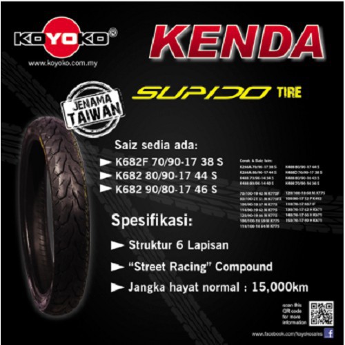 Buat sementara waktu saya berhenti guna tayar Kenda sehingga isu ini jelas. TUBELESS TAYAR 9080-17 K682 KENDA TUBELESS TYRE RM 10580 RM 8899. Aloi aluminium penggantungan sebagai pilihan.
